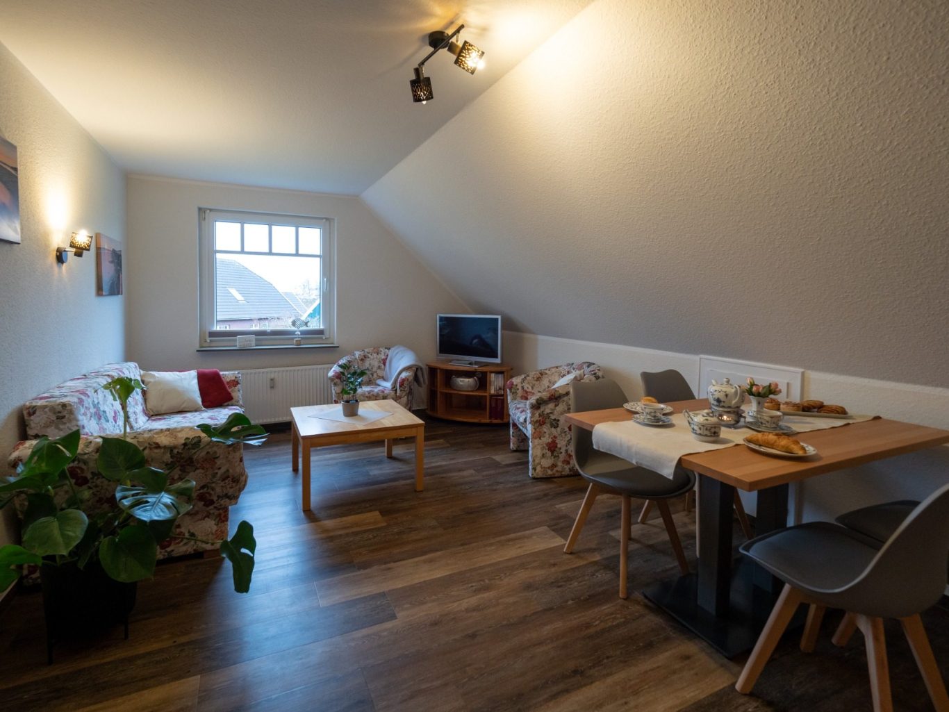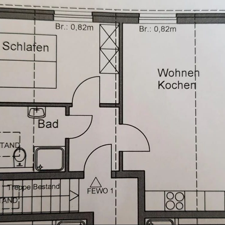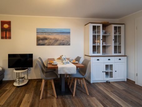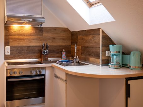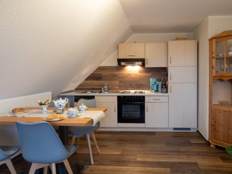 Unsere Wohnung 2 ist der ideale Ort für ein bis zwei Personen, um nach einem langen Urlaubstag zur Ruhe zu kommen. Sie bietet auf ihren 32 m² eine optimale Aufteilung. Über einen kleinen Flur erreichen Sie das moderne und freundliche Badezimmer mit Dusche und WC. Ebenso führt er Sie in den liebevoll gestalteten Wohn-/ Essbereich mit moderner Sofagarnitur, einem Essbereich, der zu ausgiebigen Mahlzeiten einlädt und einer voll ausgestatteten Küche mit Herd, Ofen und Kühlschrank inkl. Tiefkühlfach. Hinter diesem Raum befindet sich das einladende Schlafzimmer mit Doppelbett und Kleiderschank.